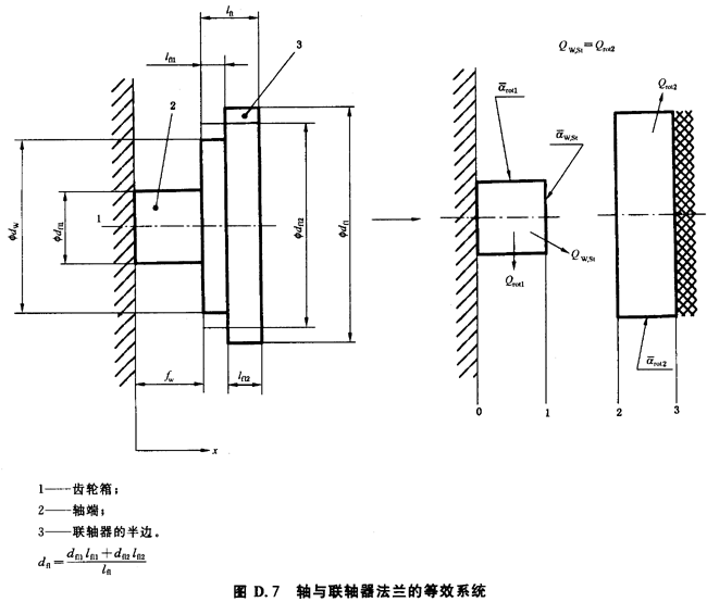 橫截面積Aq,sh與Aq,fl根據當量直徑dsh和dfl分别計算(見圖D.7)。相當於從軸到聯軸器的熱流的表面熱傳導系數α*sh,face由以下關系式計算: